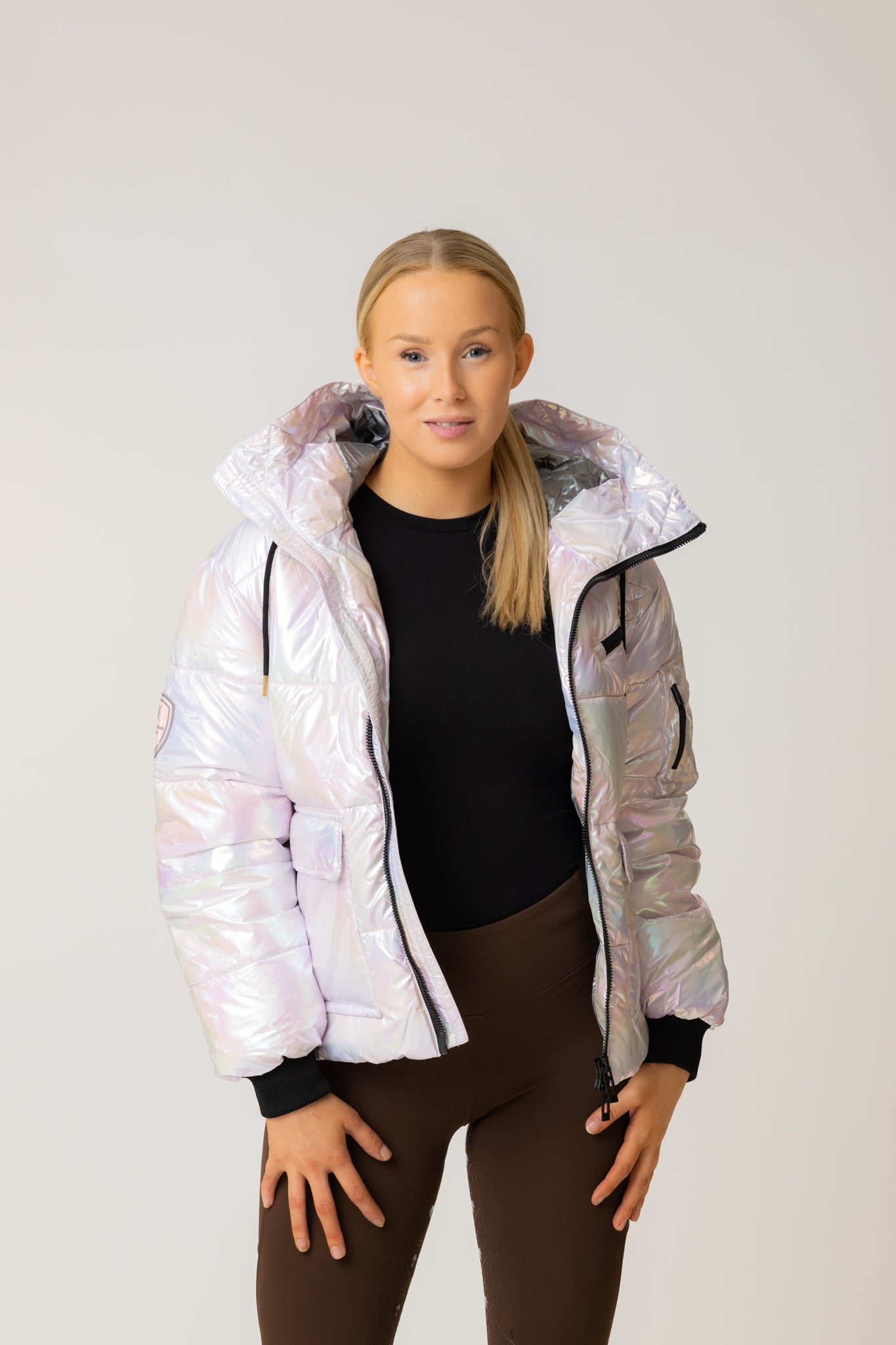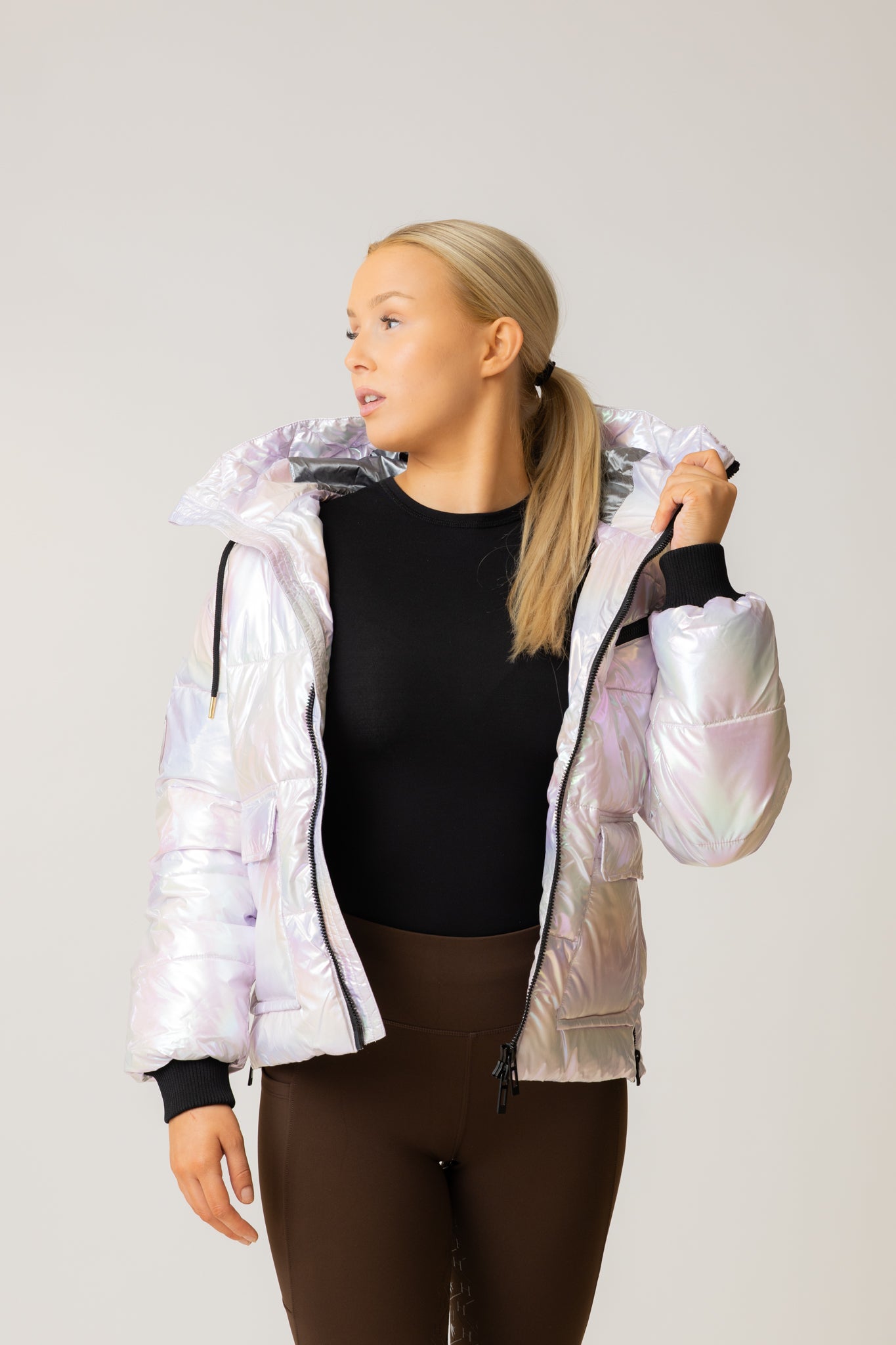 This is our all-time best seller. Trendy, high quality autumn/winter jacket for riding and free time with warm padding and a beautiful, metallic color make this cold weather jacket a must-have. Unique metallic lavender color reflects magically in different lights. Side zippers and the two-way zipper in the front makes the jacket fit well also while riding. Practical sides pockets and a chest pocket for a phone.Jacket is made with warm material that makes it super comfortable and lightweight.