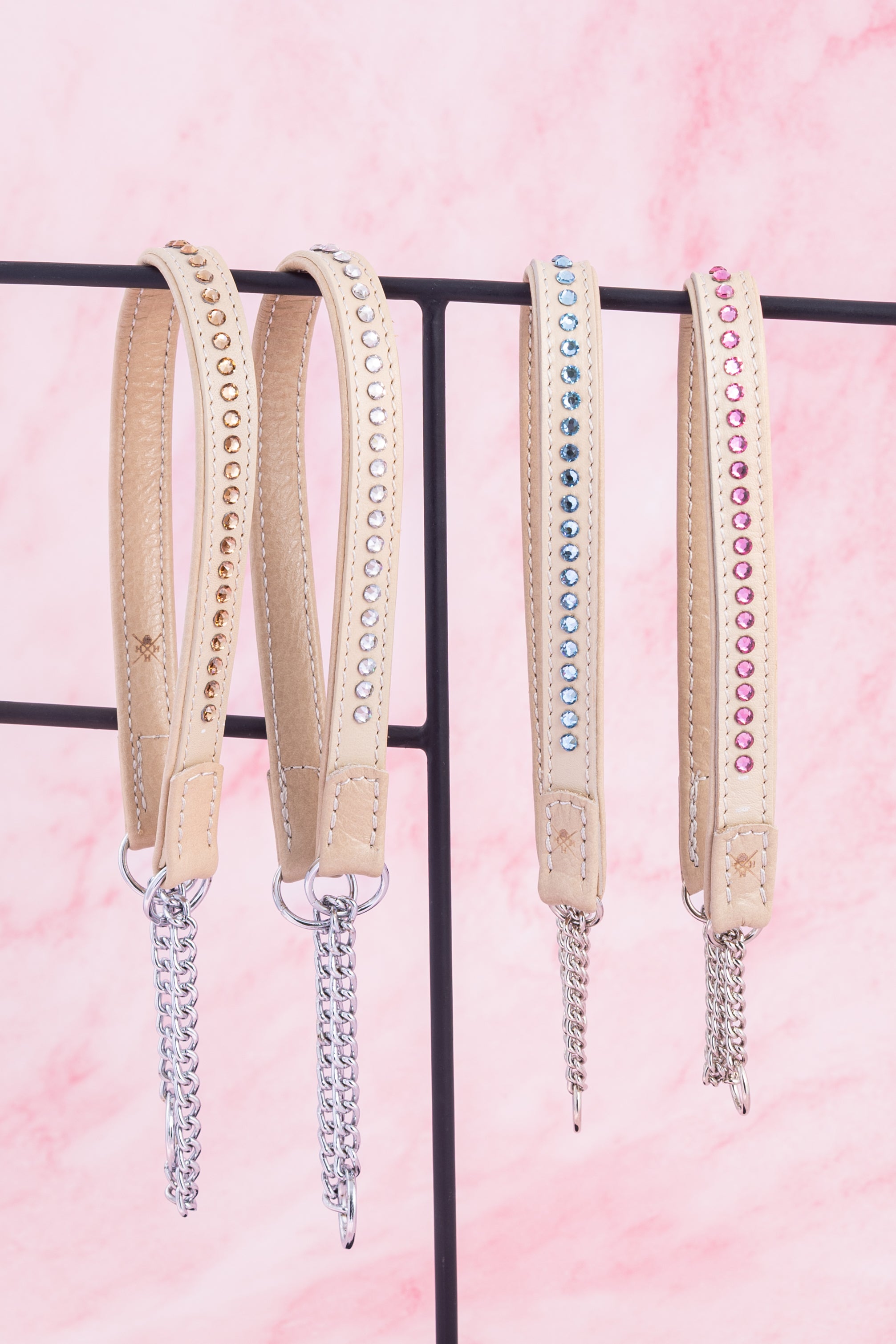 Treat your best friend with a beautiful dog collar! Made from durable, high quality material that is sure to last through playtimes, walks and cuddles. Our martingale collar comes with a silver chain.