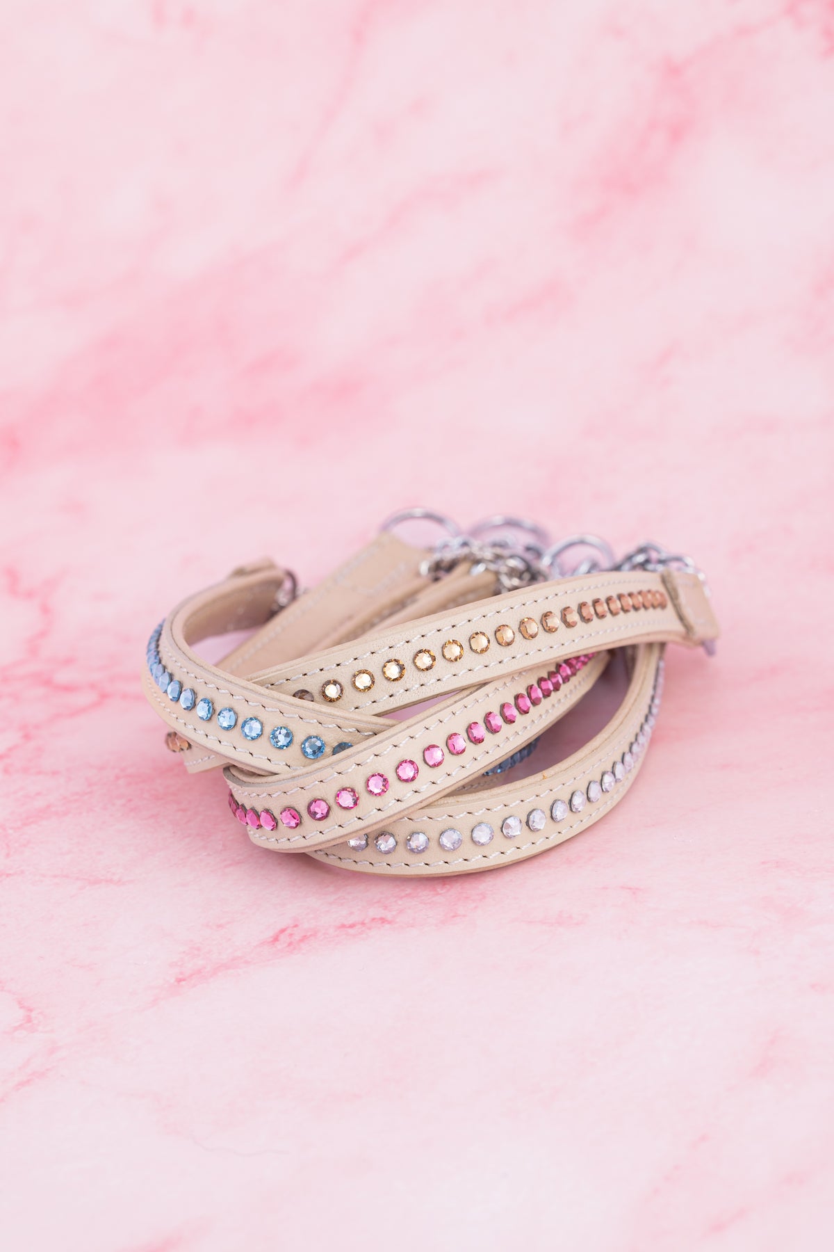 Tämä upea koiran swarovski nahkapanta tehdään kestävästä ja korkealaatuisesta materiaalista, joka kestää leikit, lenkit ja halaustuokiot. Martingale-pantaan kuuluu myös hopeaketju.
