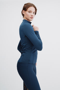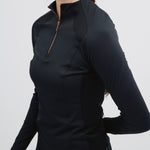 Lightweight mesh panels from the side to the arm enhance airflow, while the breathable, quick drying material keeps you comfortable throughout the day. Finished with a refined gold half zip and House of Horses Helsinki print on the back and sleeves, it pairs perfectly with the Lola Riding Leggings.